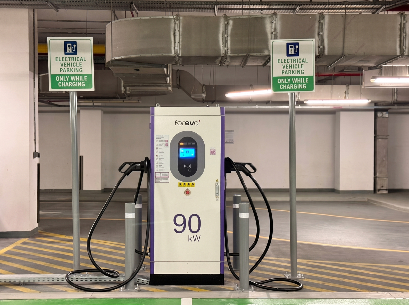 Charge your electric vehicle quickly and conveniently at the new Forevo station located at: Jenna Apartments, Town Square — Visitors parking.